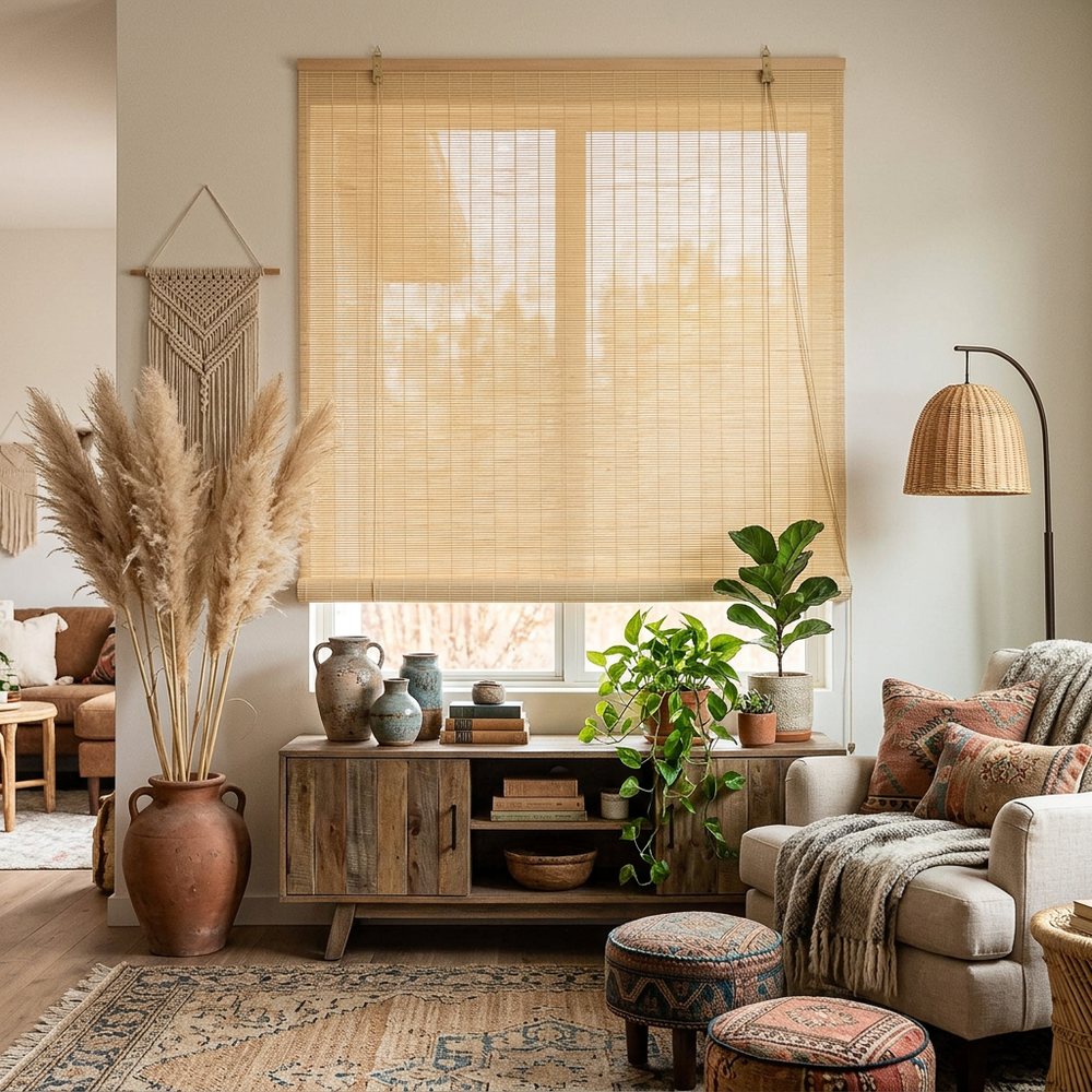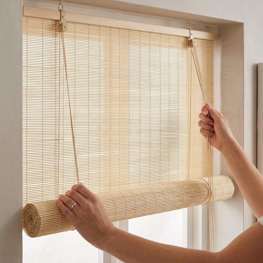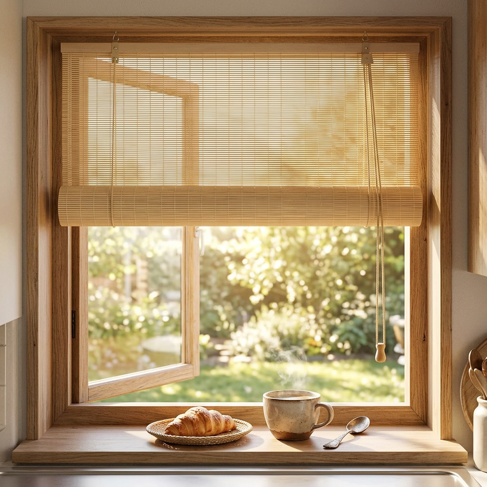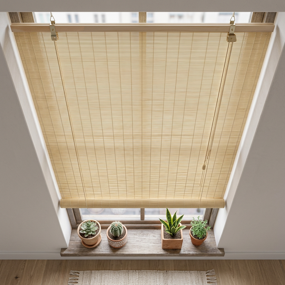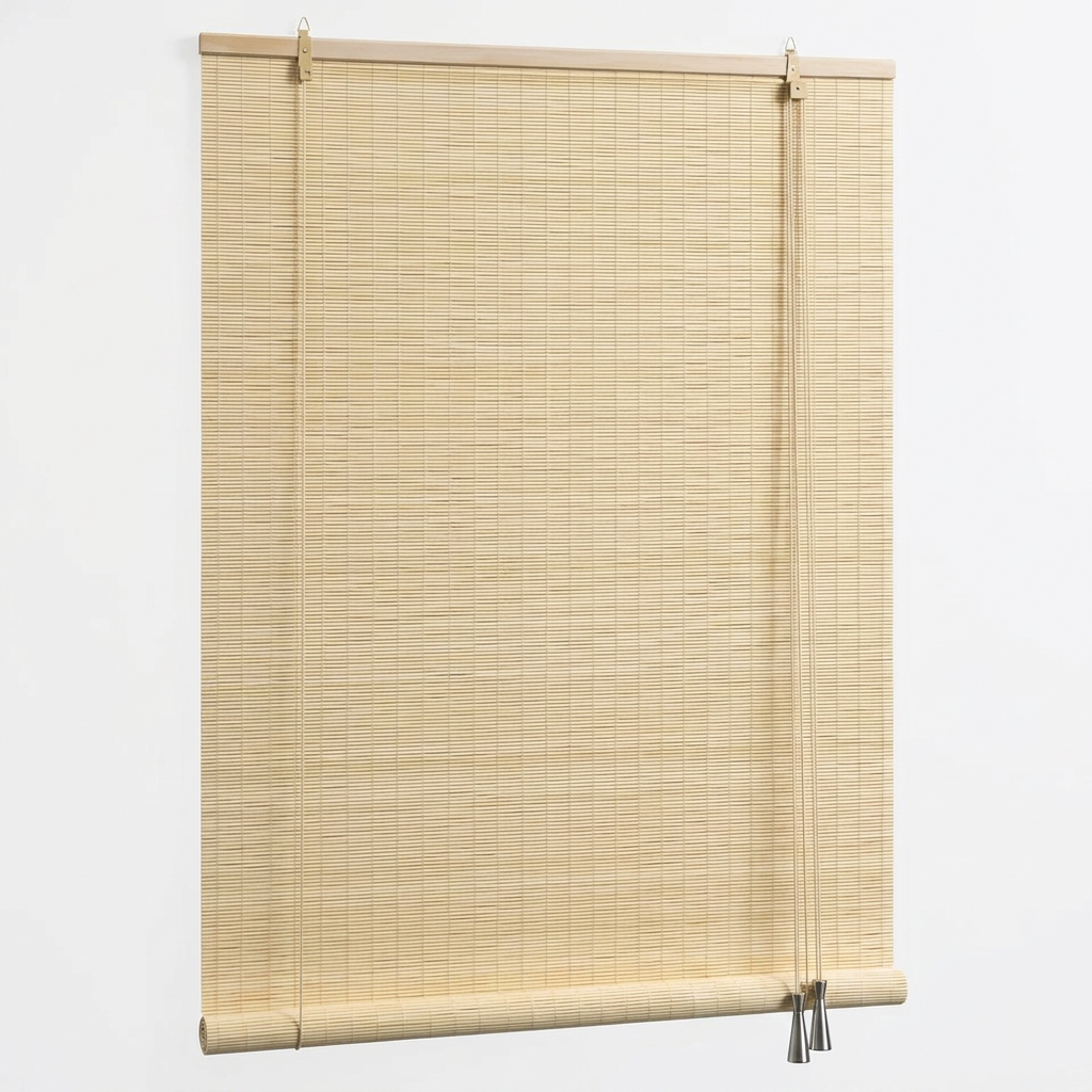 Bamboo Roller Blind Sun Protection Privacy Screen Side Pull Blind Light Filter Ventilation Blackout Blind for Window Door Patio