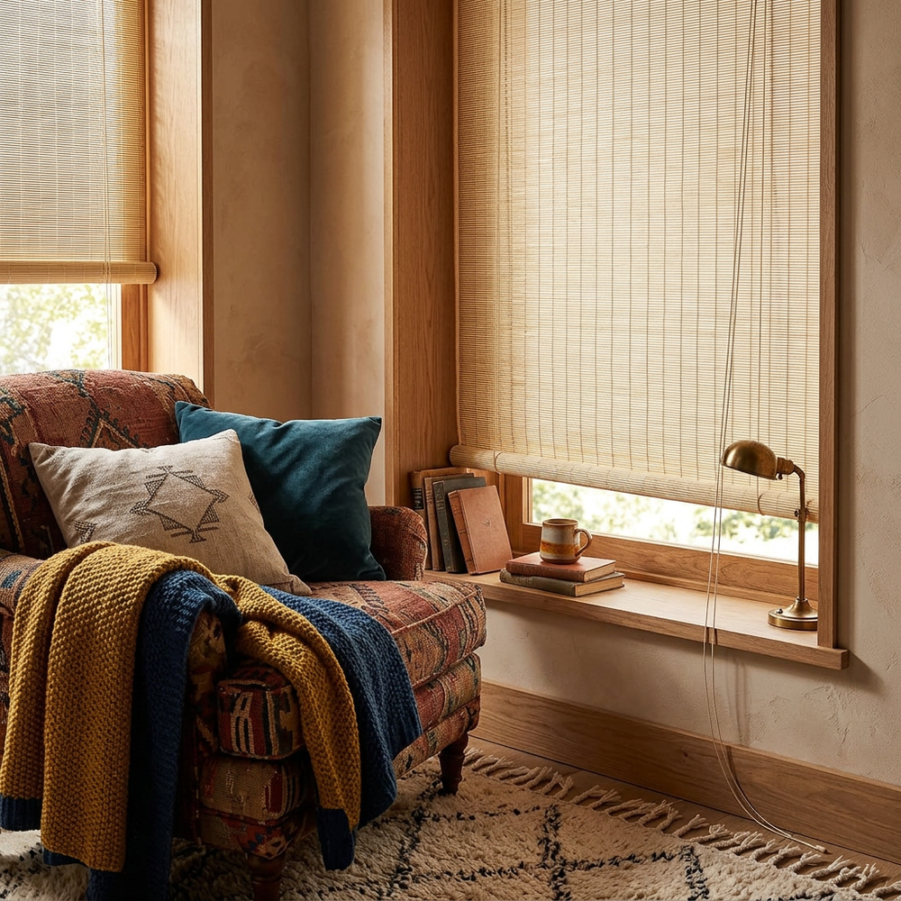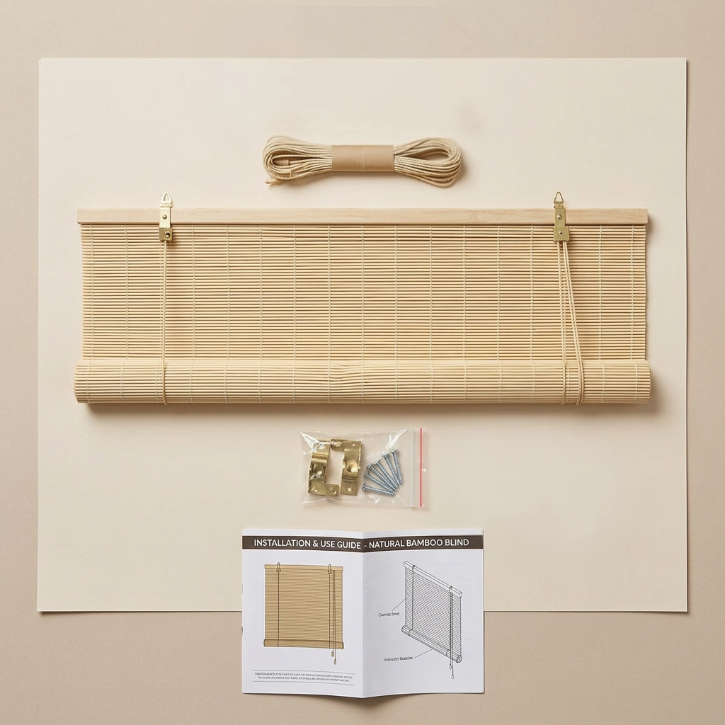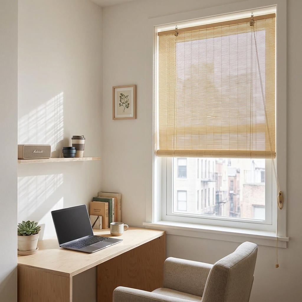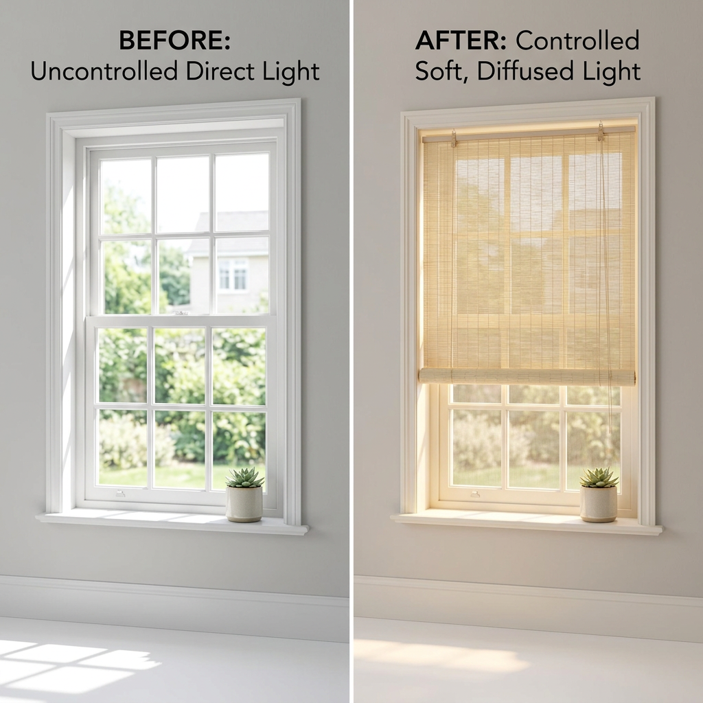 Bamboo Roller Blind Sun Protection Privacy Screen Side Pull Blind Light Filter Ventilation Blackout Blind for Window Door Patio
